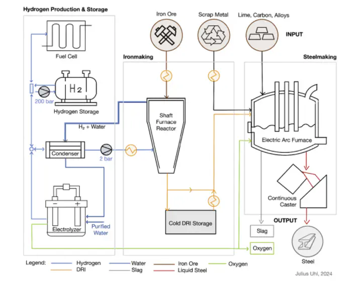The global steel industry is a major contributor to climate change and faces challenges in achieving a carbon-neutral production, hinging on the availability of cost-effective hydrogen produced by renewable energy. Mauritania, with its exceptional solar and wind resources, offers some of the most competitive conditions globally for hydrogen production. Instead of focusing on hydrogen exports, this study explores the technical feasibility and economic viability of establishing a renewable-powered steel plant in Mauritania, utilizing the country’s abundant iron ore reserves. The findings suggest that sustainably produced steel in Mauritania could be cost-competitive with current European prices. With ongoing declines in investment costs for emerging renewable technologies, Mauritania has the potential to become one of the world’s most cost-effective steel producers.